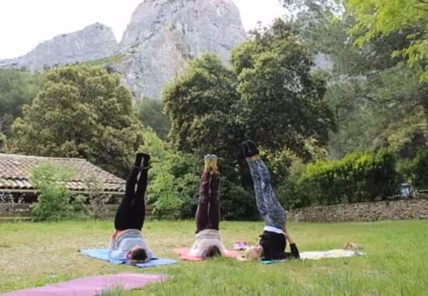 Arrivée au village, prendre à gauche dans le rond point direction centre ville, et suivre Sénas, sur votre droite le camping La Vallée Heureuse sera indiqué.
